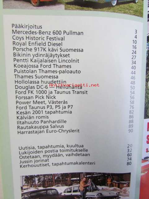Mobilisti 2001 nr 5 -Lehti vanhojen autojen harrastajille, sisällysluettelo löytyy kuvista.