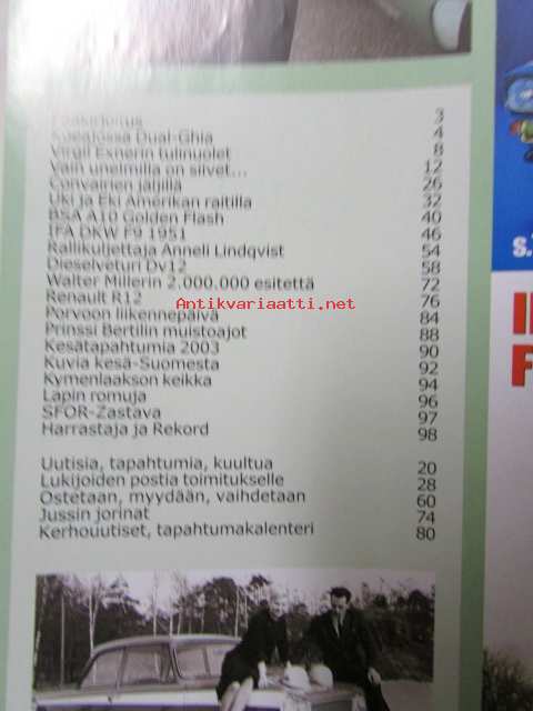 Mobilisti 2003 nr 4 -Lehti vanhojen autojen harrastajille, sisällysluettelo löytyy kuvista.