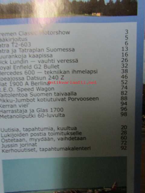 Mobilisti 2003 nr 7 -Lehti vanhojen autojen harrastajille, sisällysluettelo löytyy kuvista. Koeajossa Tatra T2-603 -69, Royal Enfielf G2 Bullet ja Datsun240 Z -71