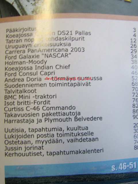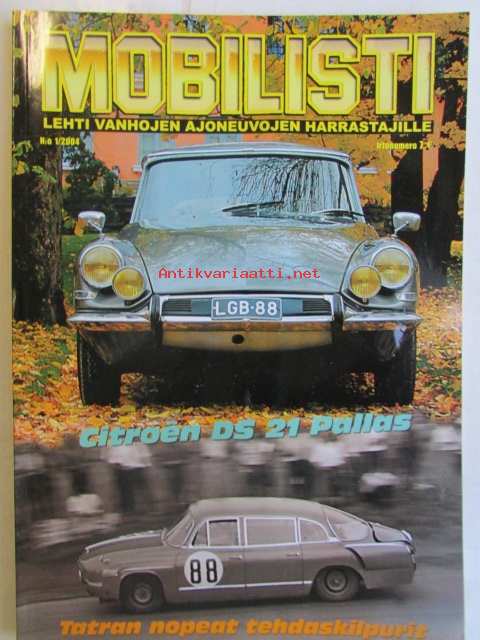 Mobilisti 2004 nr 1 -Lehti vanhojen autojen harrastajille, sisällysluettelo löytyy kuvista. Citroën DS 2 l Pallas 1966, Ford Consul Capri