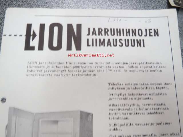 Lion jarruhihmnojen liimausuuni -myyntiesite