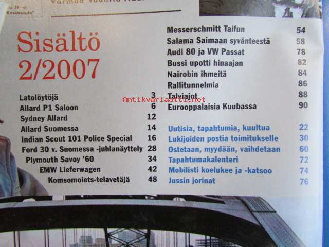 Mobilisti 2007 nr 2 -Lehti vanhojen autojen harrastajille, sisällysluettelo löytyy kuvista.