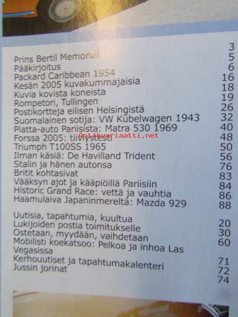 Mobilisti 2005 nr 5 -Lehti vanhojen autojen harrastajille, sisällysluettelo löytyy kuvista.
