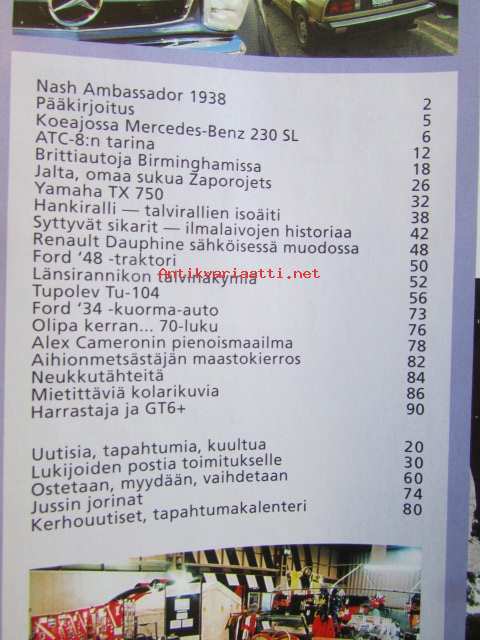 Mobilisti 2002 nr 1 -Lehti vanhojen autojen harrastajille, sisällysluettelo löytyy kuvista.Koeajossa Mercedes-Benz 230 SL