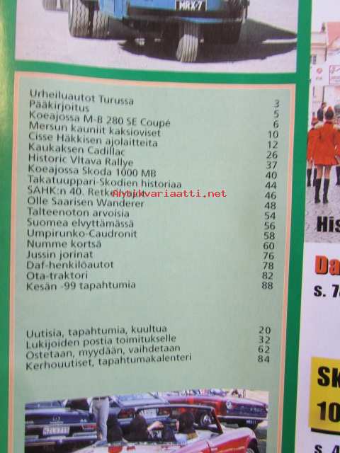 Mobilisti 1999 nr 4 -Lehti vanhojen autojen harrastajille, sisällysluettelo löytyy kuvista. Cisse Häkkisen autot