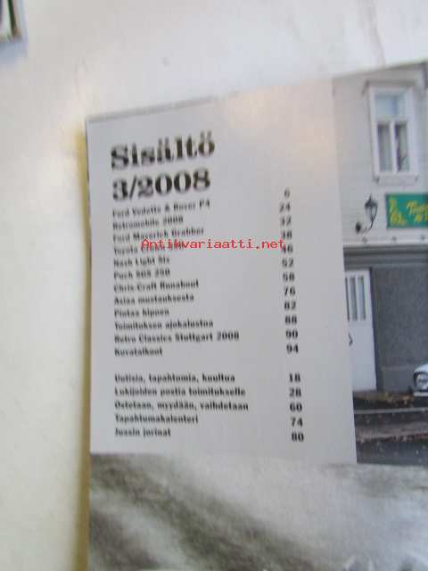 Mobilisti 2008 nr 3 -Lehti vanhojen autojen harrastajille, sisällysluettelo löytyy kuvista.