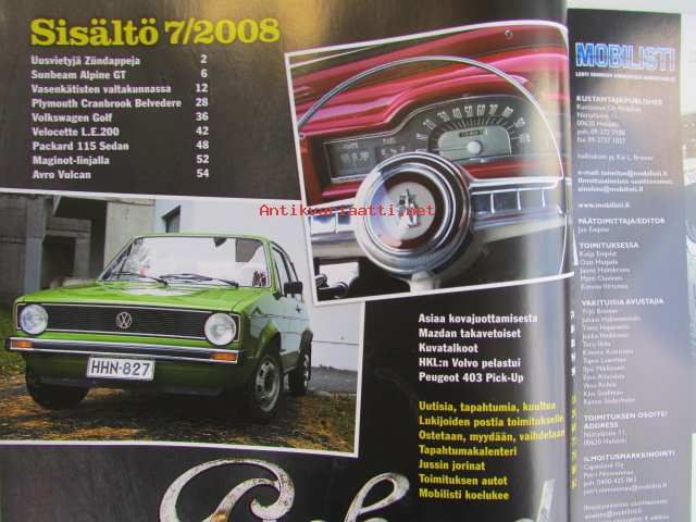 Mobilisti 2008 nr 7 -Lehti vanhojen autojen harrastajille, sisällysluettelo löytyy kuvista.