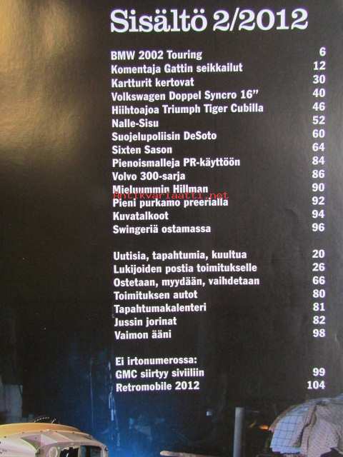 Mobilisti 2012 nr 2 -Lehti vanhojen autojen harrastajille, sisällysluettelo löytyy kuvista.