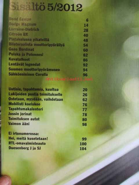 Mobilisti 2012 nr 5-Lehti vanhojen autojen harrastajille, sisällysluettelo löytyy kuvista.