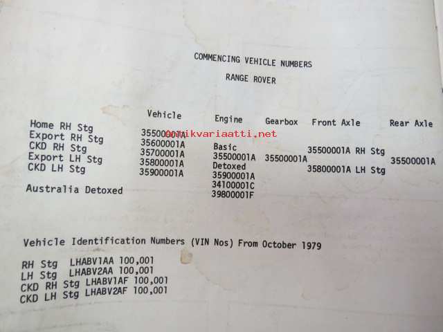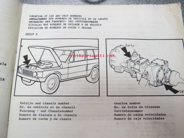 British Leyland, Range Rover Parts Catalogue -varaosaluettelo
