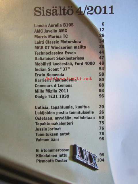 Mobilisti 2011 nr 4 + Lisäliite 31 sivuinen Jämi International Fly in & Airshow -Lehti vanhojen autojen harrastajille, sisällysluettelo löytyy kuvista.