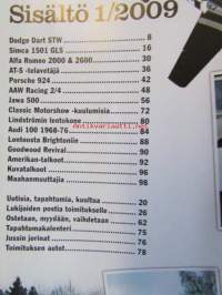 Mobilisti 2009 nr 1 -Lehti vanhojen autojen harrastajille, sisällysluettelo löytyy kuvista.