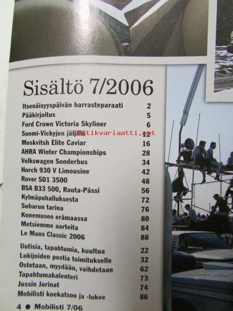 Mobilisti 2006 nr 7 -Lehti vanhojen autojen harrastajille, sisällysluettelo löytyy kuvista.
