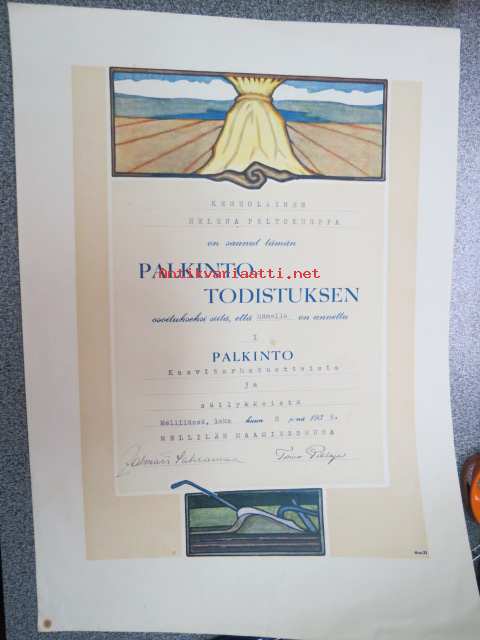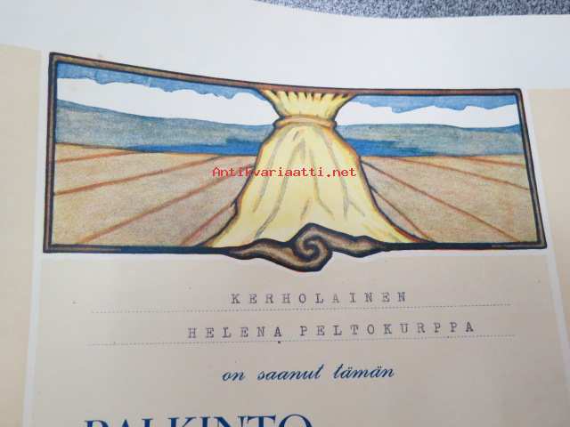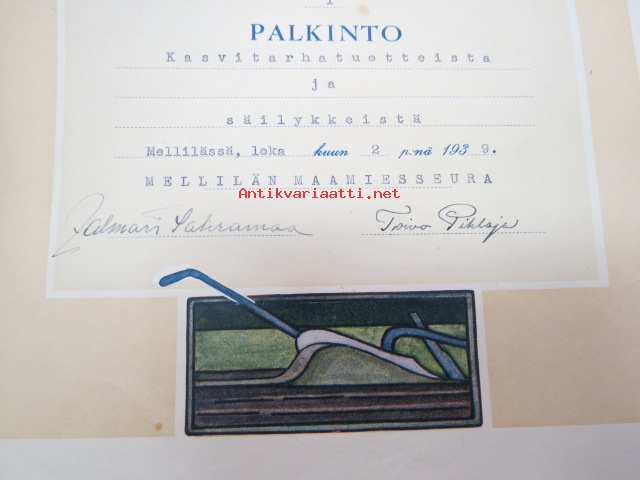 Mellilän Maamiesseura Kunniakirja / I palkinto Helena Peltokurppa kasvitarhatuotteista ja säilykkeistä 1939