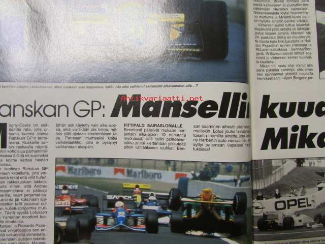 Vauhdin Maailma 1992 nr 8 -mm. Ralli-MM Uusi-Seelanti ja Argentiina, Formula 1 Englanti Ranska ja Saksa, Rauno Aaltosen ajokuolu, Alastaron Nitro-drag, Motofoto,