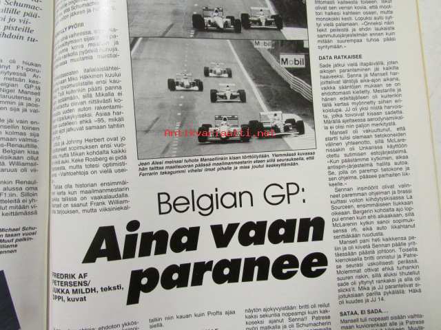 Vauhdin Maailma 1992 nr 9 -mm. Jyväskylän Suurajot, Formula 1 GP:t Unkari ja Belgia, Paris-Peking 16 000 km, Motocross-MM Heinola mestaruus jenkkeihin, Drag