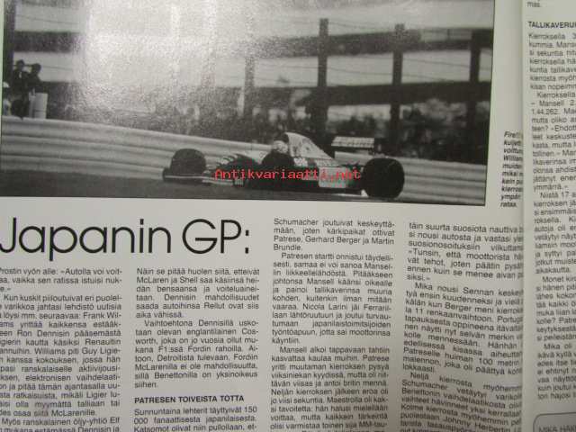Vauhdin Maailma 1992 nr 11 -mm. Formula 1 Japani, Nissan GTi ryhmä N, Löytyykö Kuplalle haastajaa, Ralli-MM San Remo, Renault Clio S, Evo -32, Kuukauden Profiili