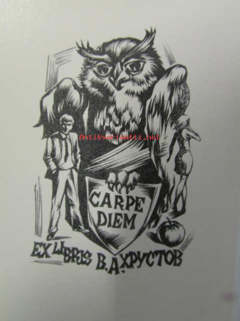 Ex Libris Carpe Diem B.A. Xpyctob -kirjanomistamerkki