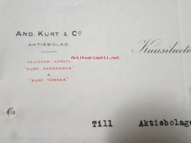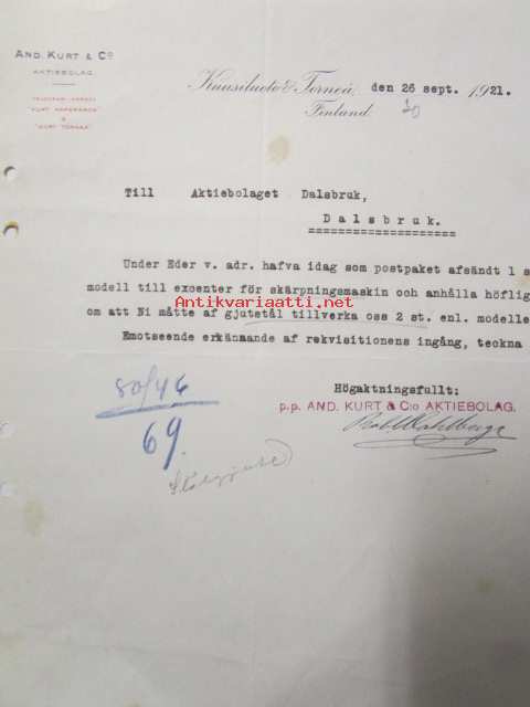 And. Kurt & Co Aktiebolag, 26. september 26. 1921. -asiakirja