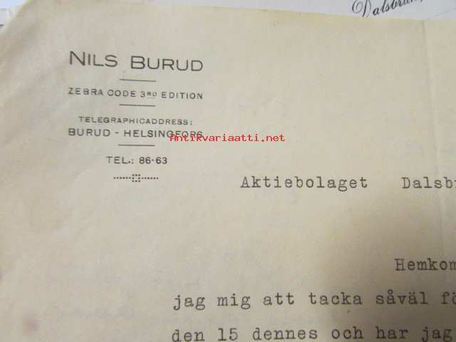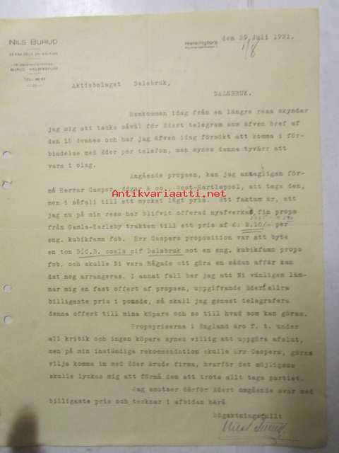 Nils Burud Aktiebolaget 29. juli 1921. -asiakirja