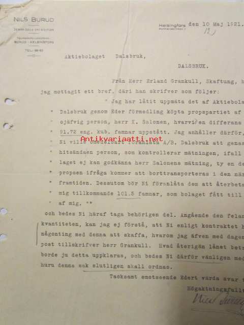 Nils Burud Aktiebolaget 10. maj 1921. -asiakirja