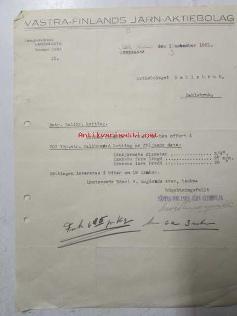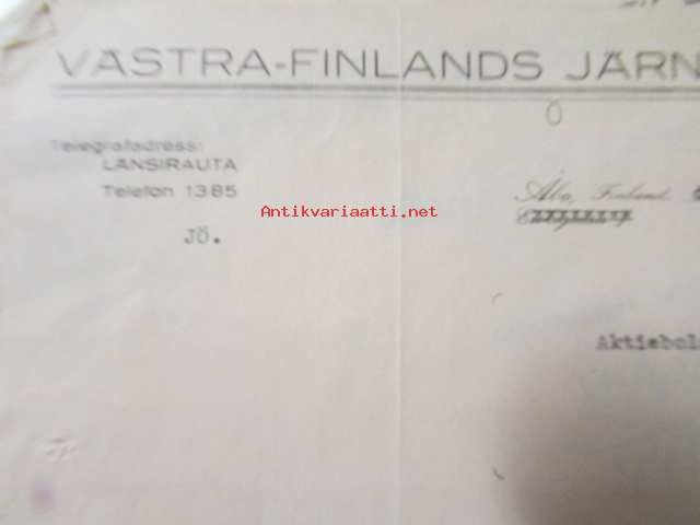 Västra-Finlands Järn-Aktiebolaget, Åbo 1. november 1921 -asiakirja