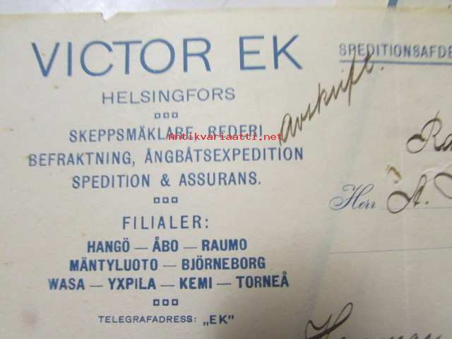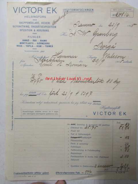 Victos EK Helsingfors, Rauma 23/9. 1915. -asiakirja