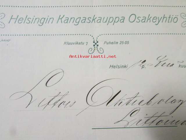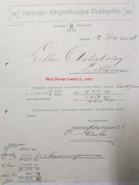 Helsingin Kangaskauppa Osakeyhtiö, Helsinki 12.kesäkuutta 1918. -asiakirja