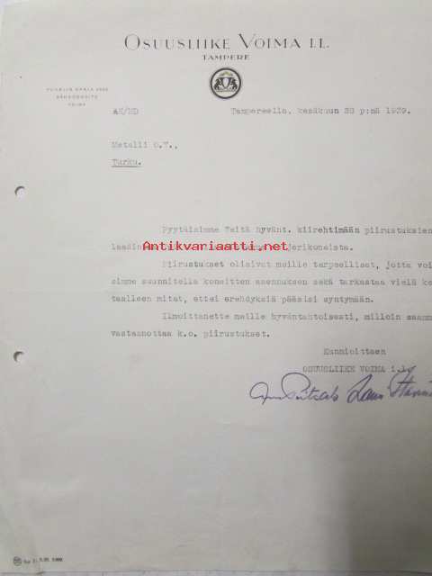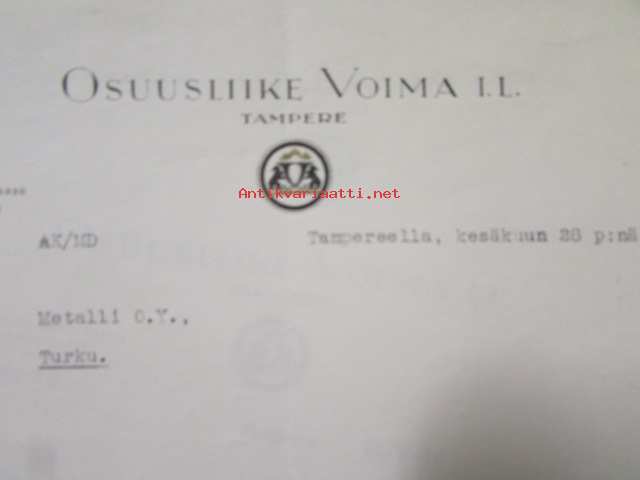 Osuusliike Voima I.L., Tampereella kesäkuun 28. 1939. -asiakirja