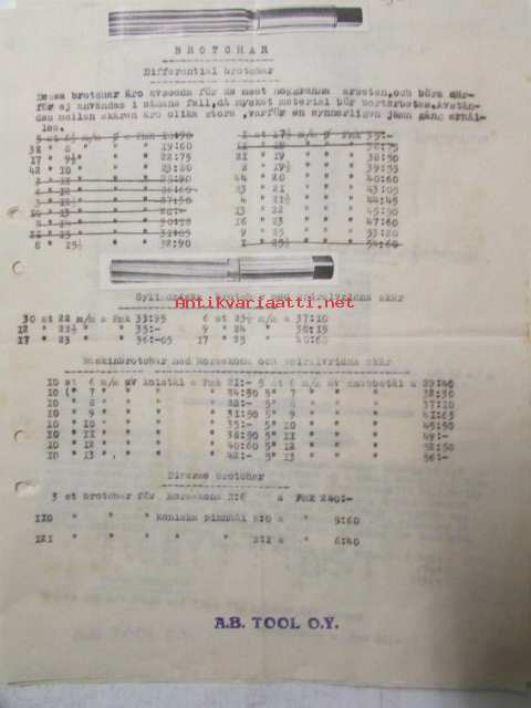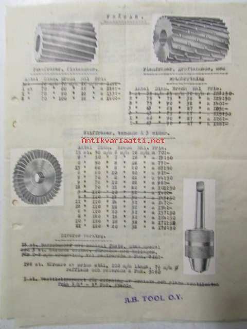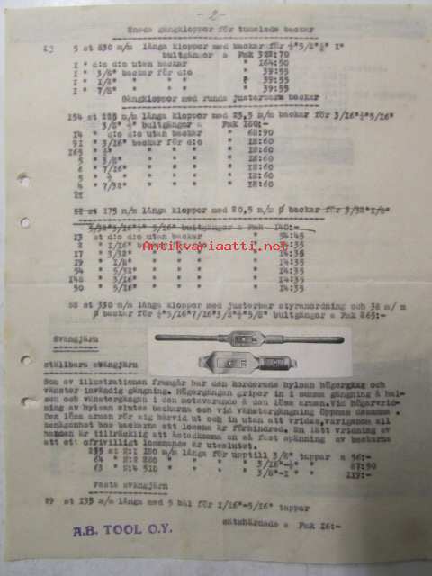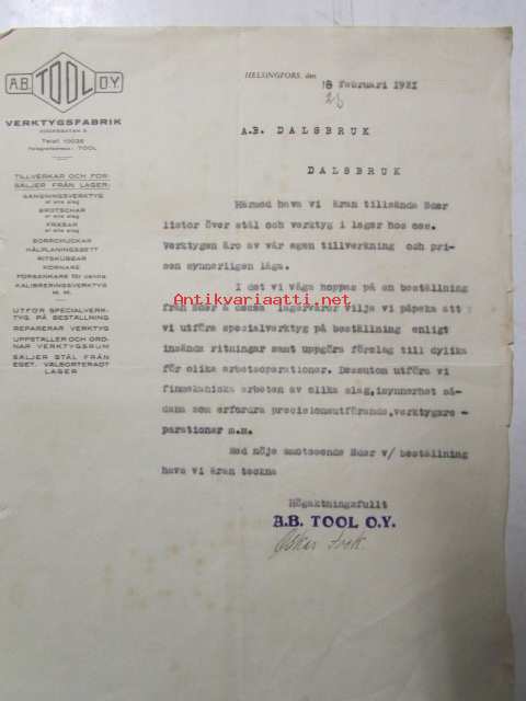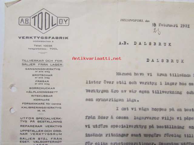 A.B. Tool O.Y. Verktygsfabrik, helsingfors 18 febryari 1921. -asiakirja