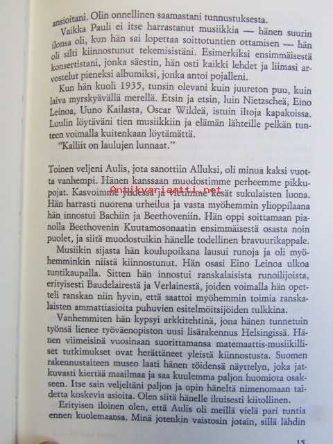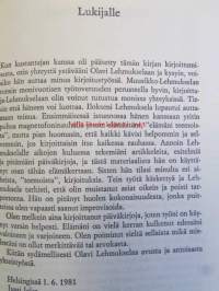 | Saatavilla | 1 kpl | | Julkaisuvuosi | 1981 | | Sivuja | 251 | | Kunto | K3 | | Sidonta/painoasu | Sidottu (kansipaperit) | | ISBN | 951-30-5328-8 | | Kielet | Suomi |