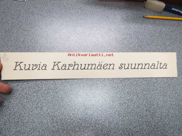 Kuvia Karhumäen suunnalta -näyttelyn otsikkoteksti -hyvin säilynyt kirjapainon arkistokappale