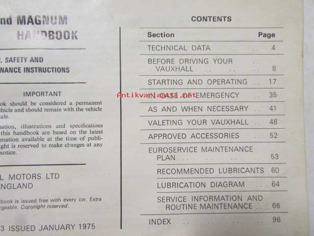 Vauxhall Viva & Magnum Handbook 1975 -käyttöohjekirja englanniksi