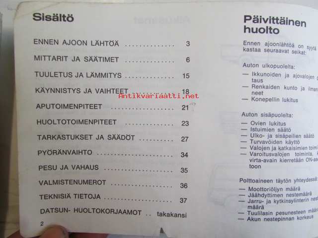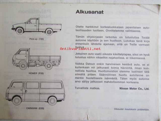 Datsun Pick-Up 720, Homer F20, Caravan E20 -Käyttöohjekirja