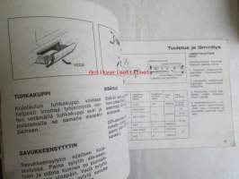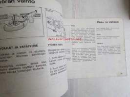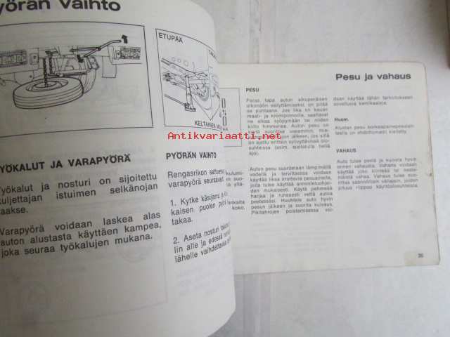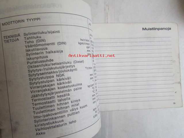 | Saatavilla | 1 kpl | | Julkaisuvuosi | 198? | | Sivuja | 39 | | Kunto | K2 | | Sidonta/painoasu | Nidottu (pehmeäk.) | | Kielet | Suomi |