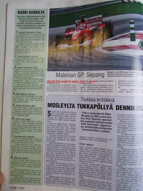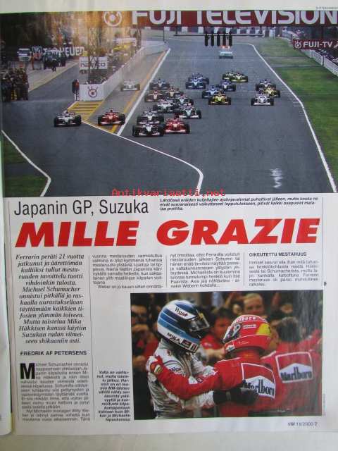 Vauhdin Maailma 2000 nr 11 -mm. Formula 1 MM Japani ja Malesia, Kuorma-autojen EM-Cup Espanja luostarinen sai ykkösnumeron, Ralli MM Korsika ja San Remo,