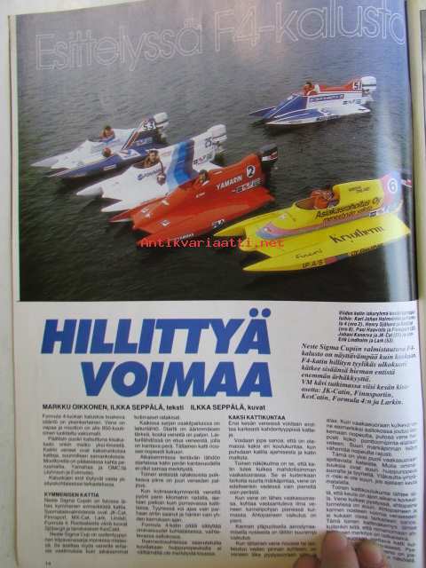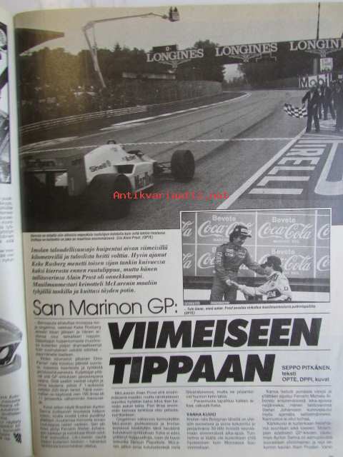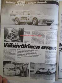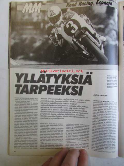 Vauhdin Maailma 1986 nr 6 -mm. VM maistelee Volvo 480 ES, Honda VFR 750, Toyota MR2, Toyota Corolla FX ja Pieni punainen custom, Ralli-MM Korsika kaiken loppu, Formula 1 Monaco kaksoisvoitto McLanerille, Formula 4 venevertailu millä ajetaan Neste-Sigma-Cupia, VM käytötestiin Suzuki 600, SM-drag avaus, RR-MM Monza, SM-cross 125 cc Mäntyharju, South Swedish ralli, FHRA:n Hot Rod Show, Formula 1 Imola taloudellisuusajoa, SM-rallicross, MM-crossi 500cc, Ruskeasanta Erik taidat viihtyä sannalla, Rata-SM Artukainen ja Ahvenisto, Monoposto, RR-MM Espanja, EM-rallicross Itävalta, VM projekti Volvo esittäytyy, MM-crossit 125cc ja 500cc.21 x 29 cm.
