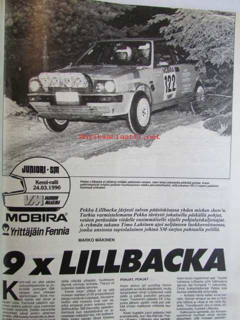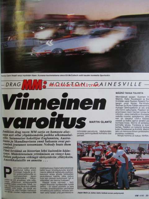 Vauhdin Maailma 1990 nr 4 -mm. Formula 1 1990, Formula 1 USA:n GP Phoenix, Ralli-SM Pohjola-ralli, Ralli-SM Kymenlaakso aina sama naama, Drag-MM Gatornationals,