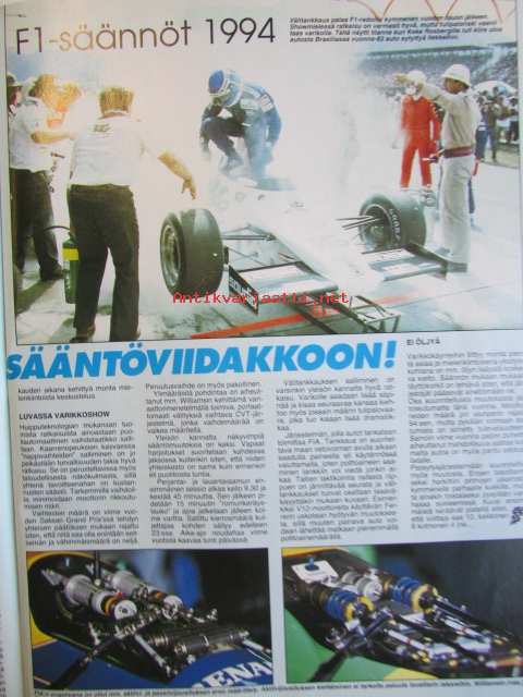 Vauhdin Maailma 1994 nr 2 -mm. Ralli MM Monte Carlo, Tunturi Ralli, formula 1 numerot ne eivät valehtele, Formula 1 säännöt 1994, JJ Benettonille Unidet Colors