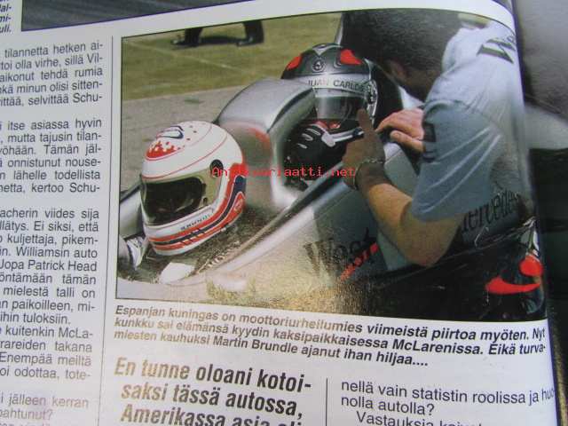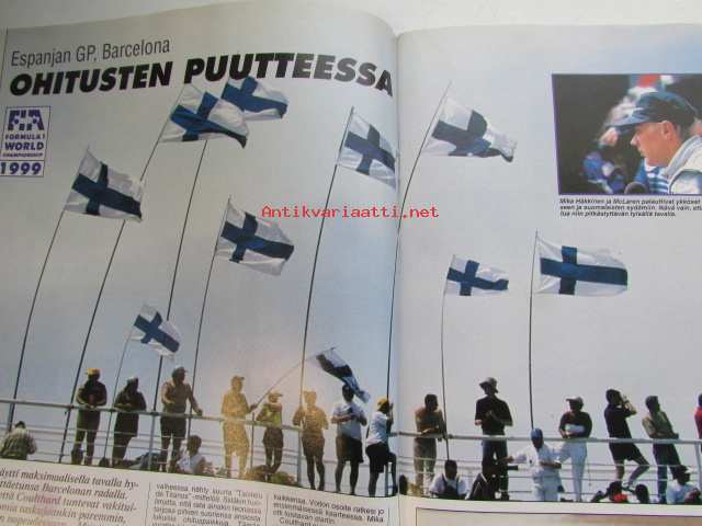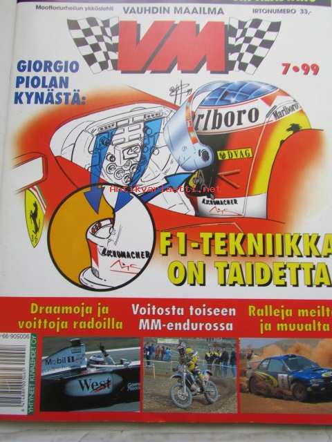 Vauhdin Maailma 1999 nr 7 -mm. Jarmo Mahonen AKK Katsoja käyttäymiset huolestuttaa, Giorgio Piola piirrokset kertovat, Formula 1 GP.t Espanja Mika ja Kuningas