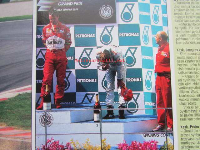 Vauhdin Maailma 1999 nr 11 -mm. Formula 1 Japani ja Malesia "Schumin" paluu, Europen Truck Raicing Cup Espanja Luostarinen pysysi mitalikannassa, Alastaro