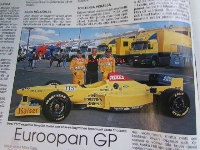 Vauhdin Maailma 1996 nr 6 -mm. Formula 1 GP:t Eurooppa ja San Marino ja Monaco, Kotimaan ratatestipäivät Sport 2000 ja SS-luokat, VM esittelee kemiläisen Esort