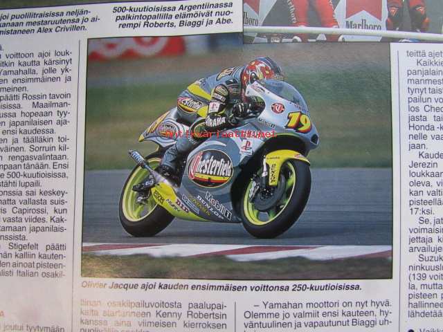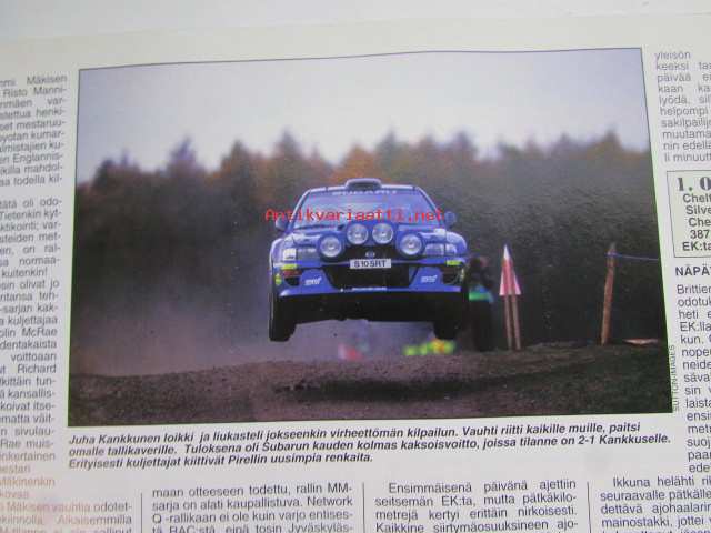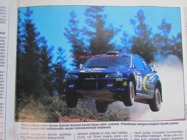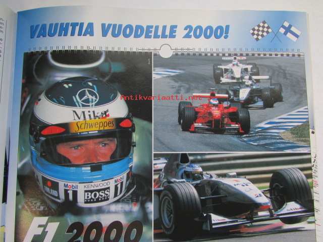 Vauhdin Maailma 1999 nr 12 -mm. Ralli-MM Australia ja Englanti Kaikki halusivat voittaa, Nuorten ralli-SM 2000 Yksi luokka monta suosikkia, Formula 1 kausi 1999 giorgio Piolan silmin, CART Fontana Surullinen päätös, Pikku-formulat Loppuyhteenveto, Monza 500 Coppa Intereuropa Hengitys salpantui, Tokion autonäyttely Urheilullisuuden laajempi käsite, Aprilia RSV 1000 Mille, RR-MM Argentiina Kausi päättyi, Toptronics Suprtcross Turku Crossimiehet jäähallissa, Elämäni kisa Juhani Suvanto.21 x 29 cm.