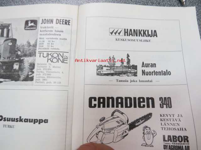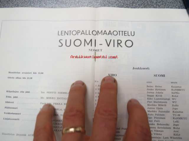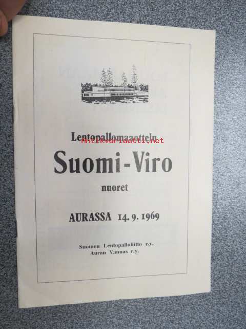 Lentopallomaaottelu Suomi-Viro nuoret Aurassa 14.9.1969 -käsiohjelma