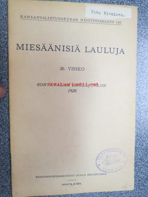 Miesäänisiä lauluja 26. vihko Sortavalan laulujuhliin 1926