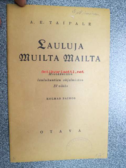 Lauluja muilta mailta. Miesäänisten laulukuntien ohjelmiston IV vihko 1940
