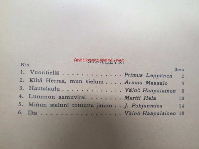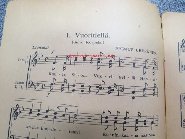 Hengellisiä lauluja kokoelman toimitanut E. A. Taipale, Miesäänisten laulukuntien ohjelmistoa IX vihko 1925