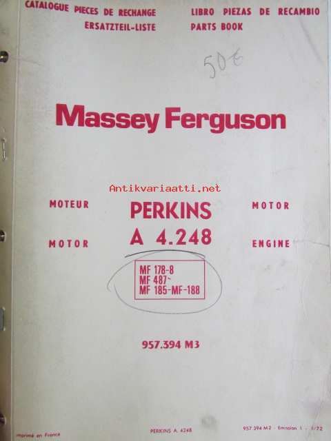 Massey Fergusson 487 Combine/Leikkuupuimuri v. 1972 päivityksiä -76 asti ja MF Perkins A 4.248 Engine Moottori.