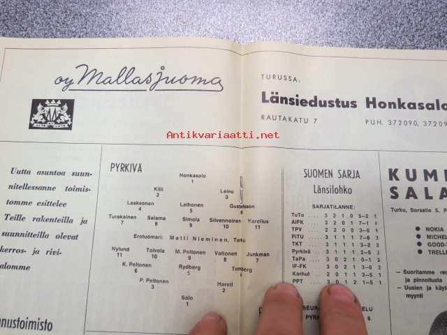 Suomensarja 1968 Turun Pyrkivä -vuosiohjelma / -käsiohjelma
