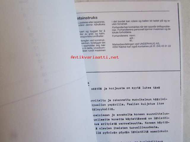 Underhaug Silawrap Model 7550 -Pyöröpaalauskoneen käyttöohjeet